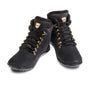 De plus en plus de personnes apprécient le confort et les bienfaits de la marche pieds nus, pour renforcer les muscles et les articulations et tonifier l'ensemble du système musculo-squelettique. Avec ces bottines à lacets, profitez d'une sensation de liberté et de naturel, même par temps froid, au quotidien, pour faire vos courses, vos virées en ville, vos promenades en forêt, etc. Elles sont dotées d'une semelle extérieure multiflexible, d'une doublure chaude et d'un maintien sûr et précis. La semelle extérieure à crampons de 2 mm d'épaisseur en Lifolit®-lg est particulièrement flexible et antidérapante. Elle protège efficacement vos pieds des pierres pointues et des terrains accidentés. Elle stimule également la circulation sanguine en douceur, à l'instar d'un massage de réflexologie plantaire. Le système de laçage à œillets et crochets assure un maintien stable, même sur les sols forestiers irréguliers. La doublure douce procure une chaleur agréable et un confort optimal. La tige déperlante vous protège de la pluie. Un design décontracté et sportif. Pour hommes et femmes. Pointures disponibles du 38 au 47. Tige : 60 % polyester, 40 % polyuréthane. Doublure et semelle intérieure : 100 % polyester. Semelle extérieure Lifolit®-lg en PVC sans phtalates. Couleur : Noir. Fabriquées en Allemagne. Ces chaussures taillent petit ; nous vous recommandons de commander une pointure au-dessus.