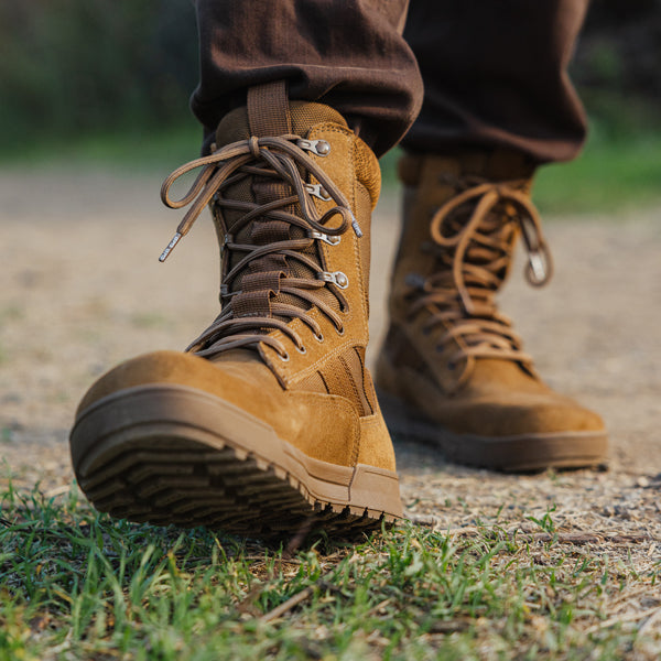 Bereit für den Dienst und zum Bewegen gebaut. Diese 9" taktische Boot kombiniert eine AR 670-1 konforme Konstruktion mit unserem breitesten Leisten und einer Vibram® Megagrip-Sohle für unaufhaltsamen Grip und ganztägigen Komfort im Einsatz.